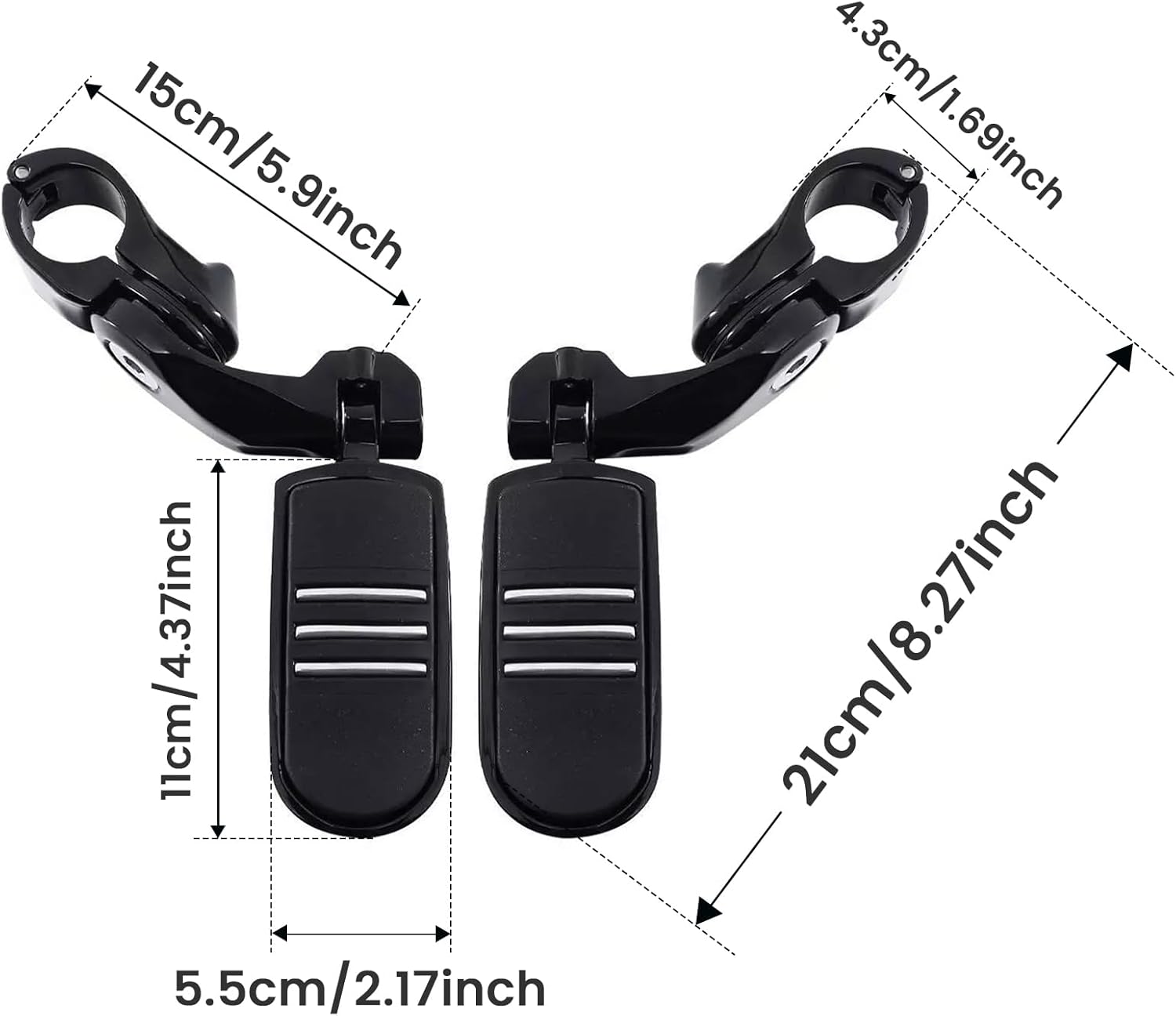 - Easy installation:The item easy to install, No drill installation and mounting clamp firmly grips the engine guard, and secures the peg at the desired angle; Please contact us by Amazon email if you have any questions