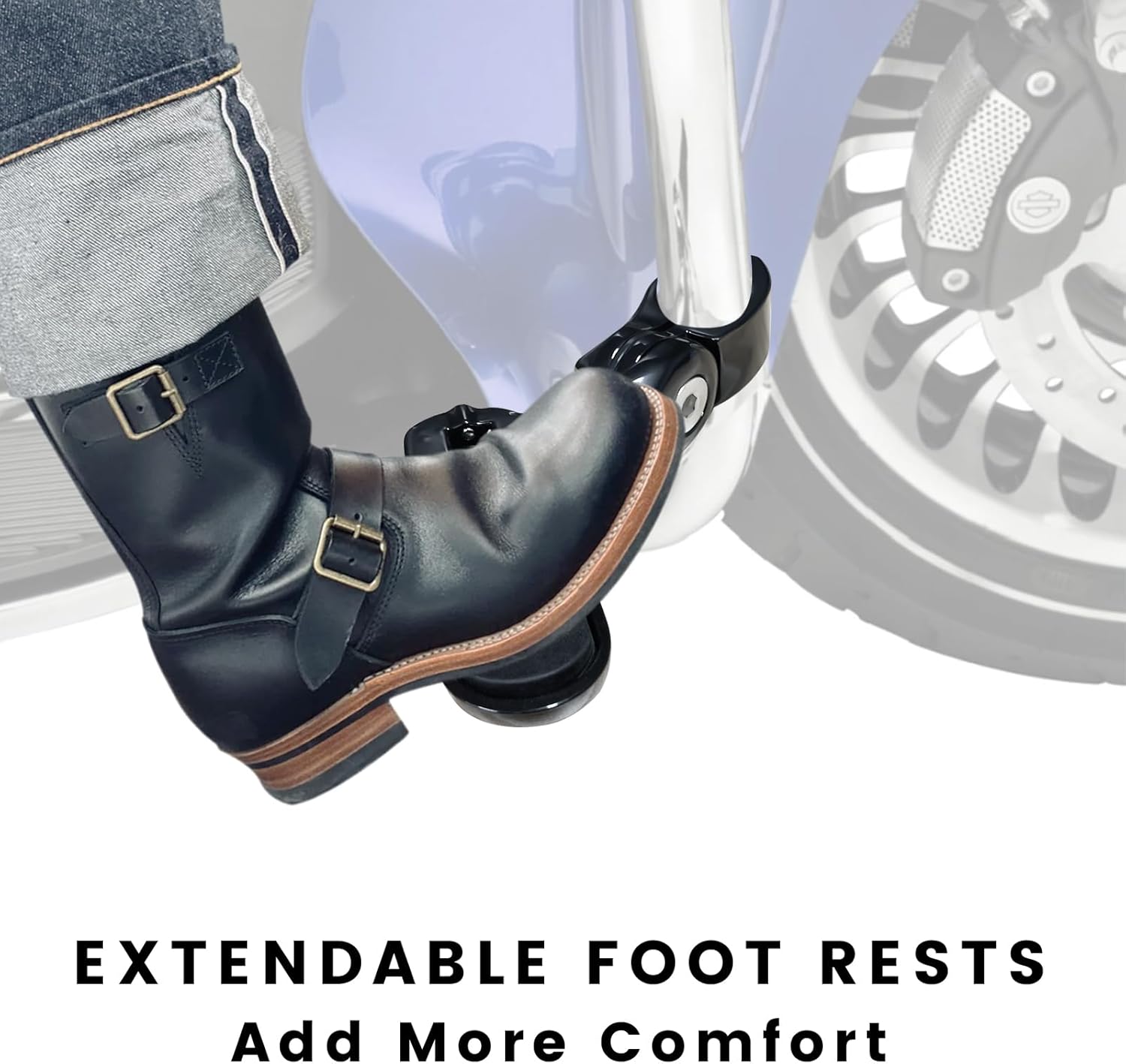 - Relax Your Foot: Adjustable highway pegs can adjust the leg position, reduce fatigue during long-distance riding, relax and feel comfortable! Folds inward when not in use to avoid scratching the car body or affecting low-speed maneuvers, taking into account both safety and convenience