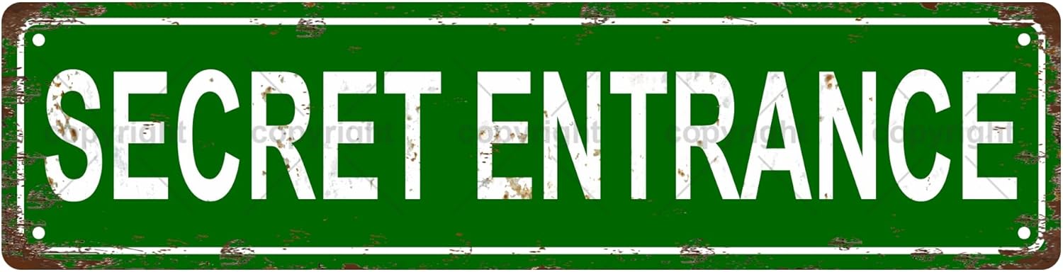 SECRET ENTRANCE Space Vintage Metal Tin Sign, Street Sign, Home Decor, Room Decor, Wall Decor, Bathroom Decor, Bar Decor, Cafe Decor, Garage Decor, 16 x 4 Inch