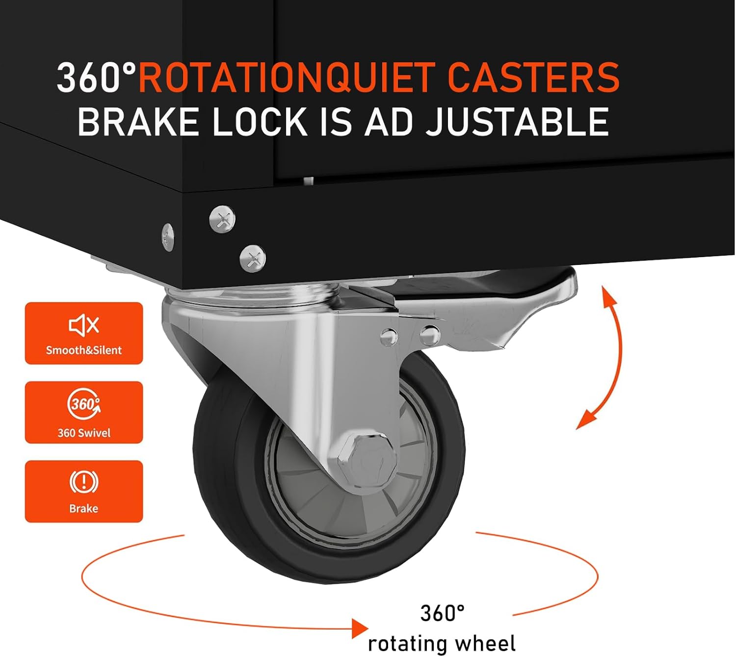 Metal Garage Storage Cabinet with Wheels ,Lockable Rolling Tool Chest on Wheels, Utility Cabinet for Home, Office, Garage and Workshop(Black)