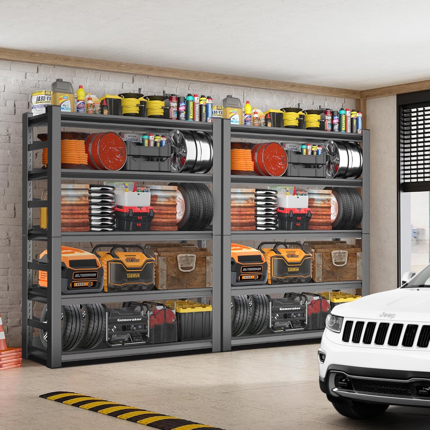 - 【Garage Shelving Heavy Duty】:Our metal storage shelves are made of heavy-duty steel and have been upgraded to double layered columns, each with supporting ribs, and the surface of the shelves is coated with high-quality powder coating. It is not only sturdy and durable, but also ensures that the shelf maintains its appearance and performance in various environments. Each shelf can carry up to 800 pounds, and the maximum weight capacity of 4000 lbs.