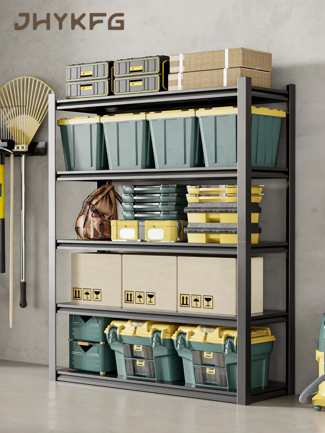 JHYKHG 63" H Storage Shelves,5-Tier Heavy Duty Garage Shelving,Adjustable Shelving Unit,Metal Shelf,Boltless Assembly Rack for Warehouse,Shed,2,500 lb Load,16 x 32 x 63 Inches,Black