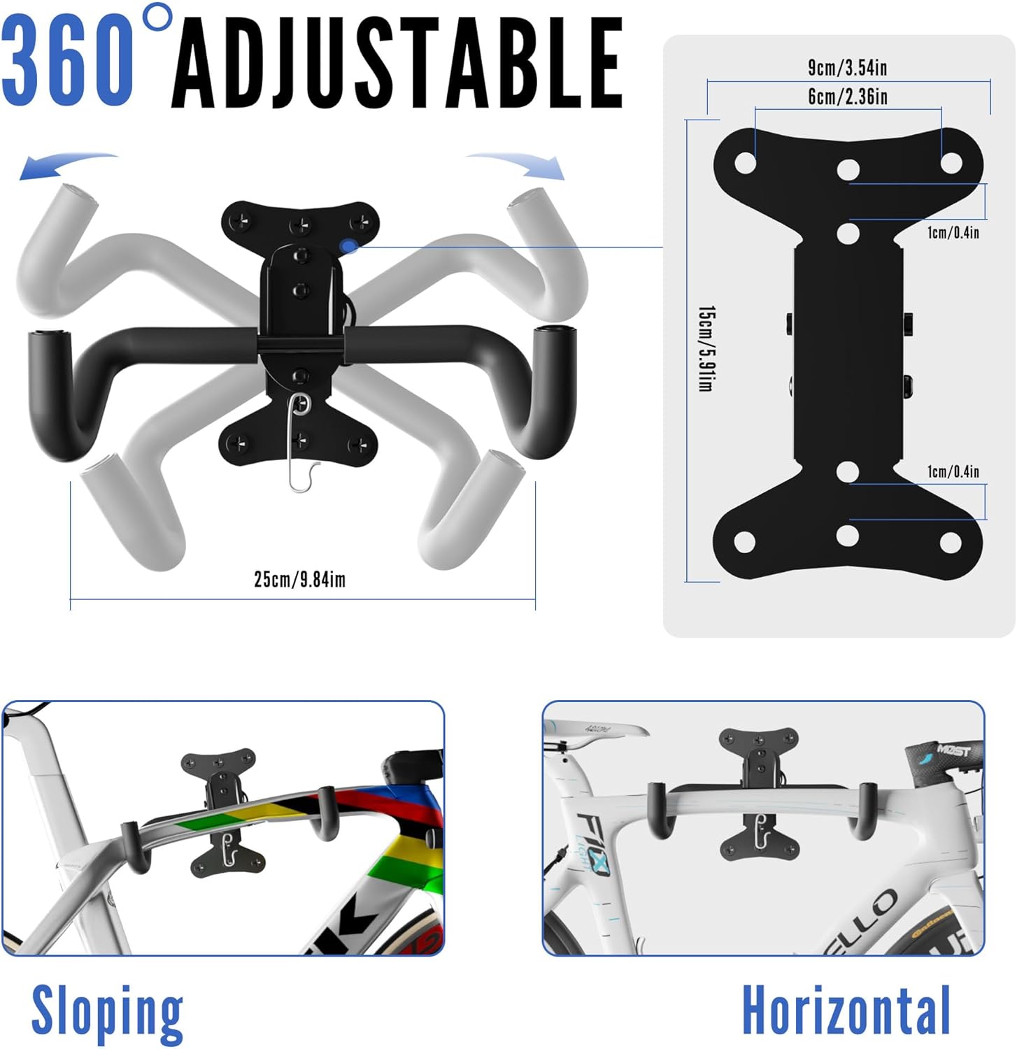 - 【ADJUSTABLE DESIGN】 90° adjustable valve mechanism (no tools required) to fit bikes with handlebars up to 32" wide. Foldable arm saves space when not in use. Optimized for road, mountain, and hybrid bikes.