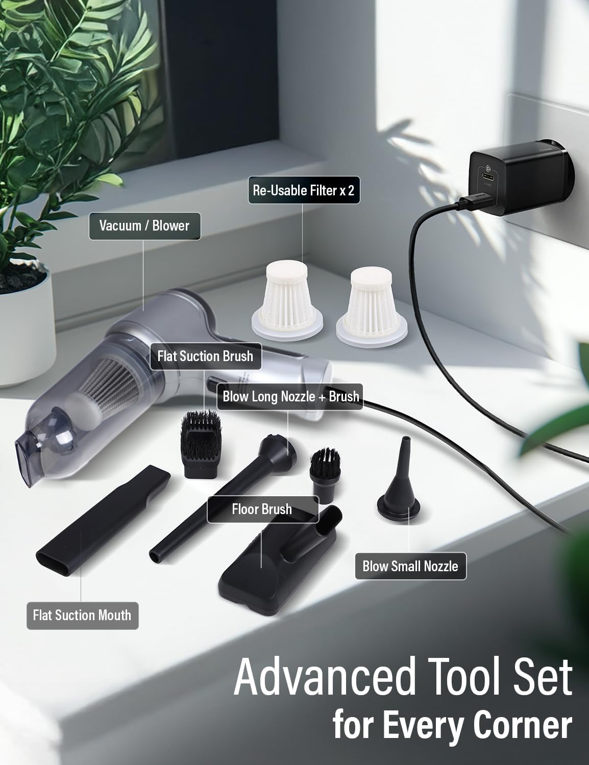 - ✅Designed for Car, Home & Office Use: Use as a mini car vacuum, portable vacuum cleaner, or dust buster handheld vacuum for cleaning car seats, dashboards, keyboards, and more—great for everyday cleanups.