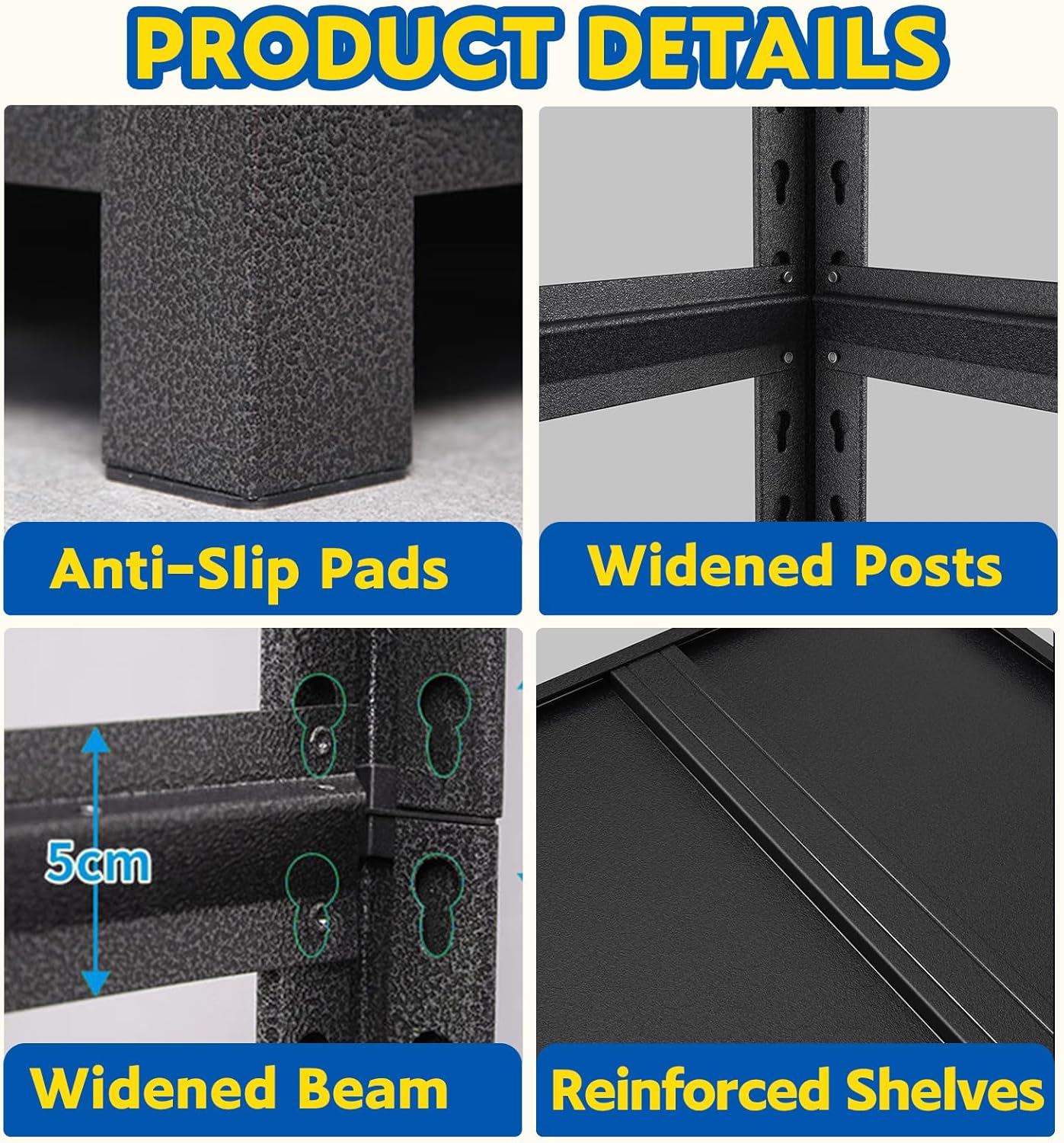 - 【Rust-Resistant, Scratch-Proof & Built to Last】Coated with a high-temperature electrostatic powder finish, the surface is highly resistant to rust, scratches, and everyday wear and tear. This protective layer enhances durability, ensuring your garage storage shelves heavy duty remains in top condition even in humid or demanding environments.