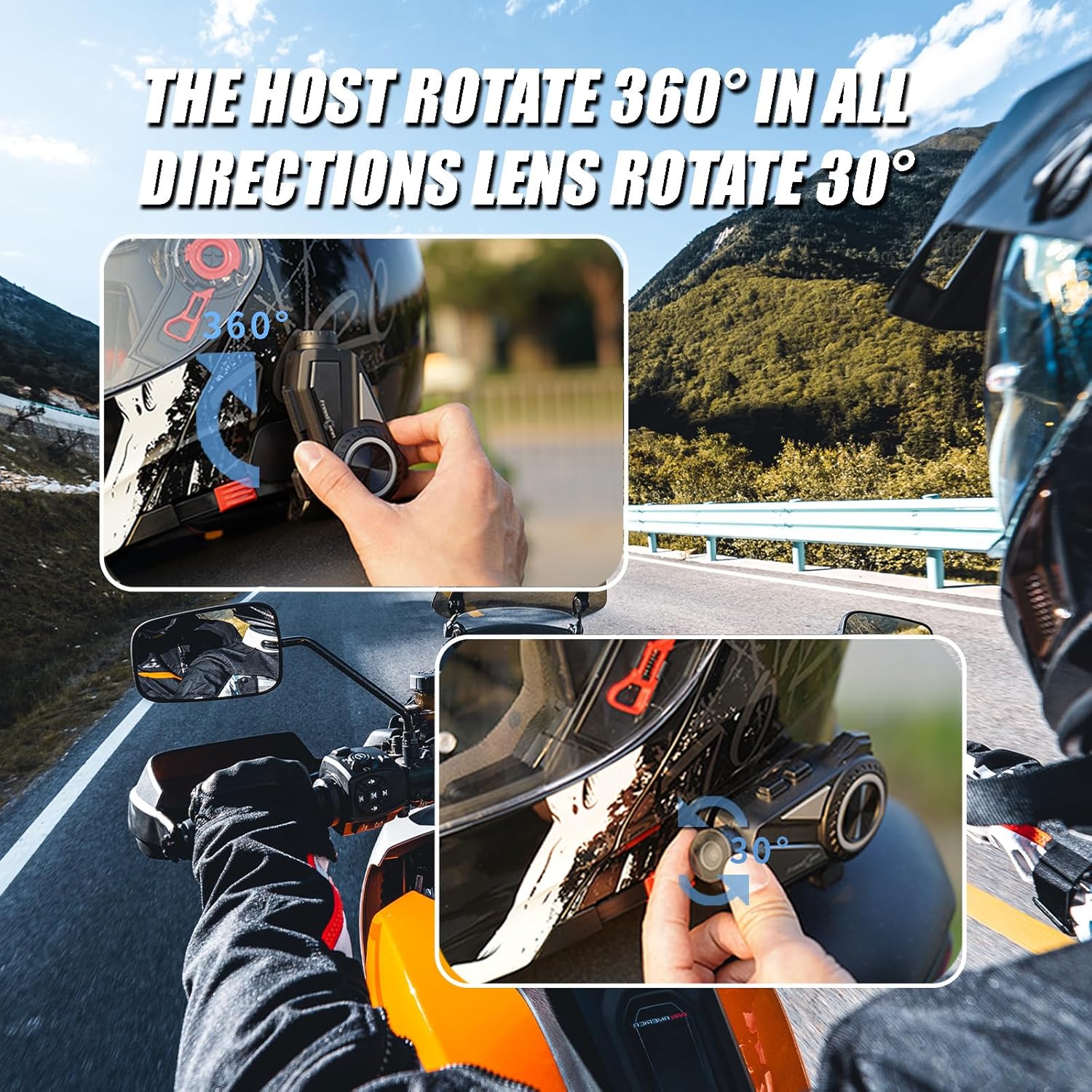 - 【Fast-Charging Performance】This motorcycle helmet bluetooth headset supports USB-C fast charging, allowing you to power up quickly during breaks. Loop recording auto-saves 6hr footage to 128GB card