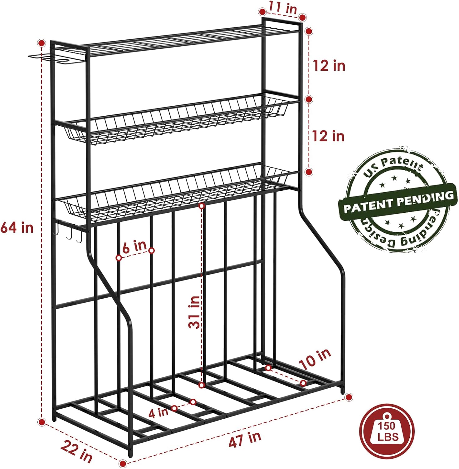 - 【3-Tier Large Capacity Storage Racks】Upgraded bike rack with 3-Tier Storage Racks for helmets/sports equipment/basketballs/shoes, etc. Abundant hooks to hang rackets/bags/helmets, etc. Say goodbye to clutter in your garage and create a neat and efficient riding space.