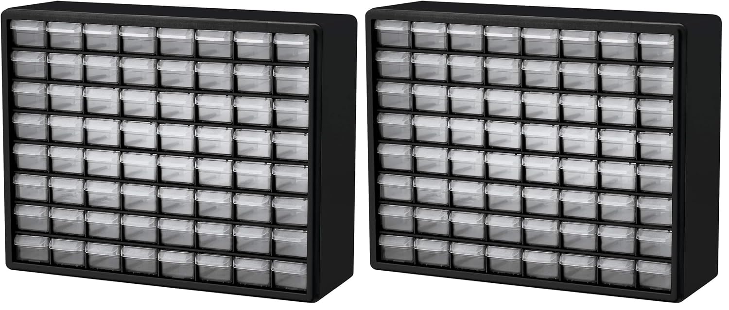 Akro-Mils 64-Drawer Plastic Drawer Storage Cabinet for Garage Organization, Bead Organizer, Building Bricks Storage, Teacher Toolbox, Makeup Organizer, 20-Inch W x 6-Inch D x 16-Inch H, 10164 Black
