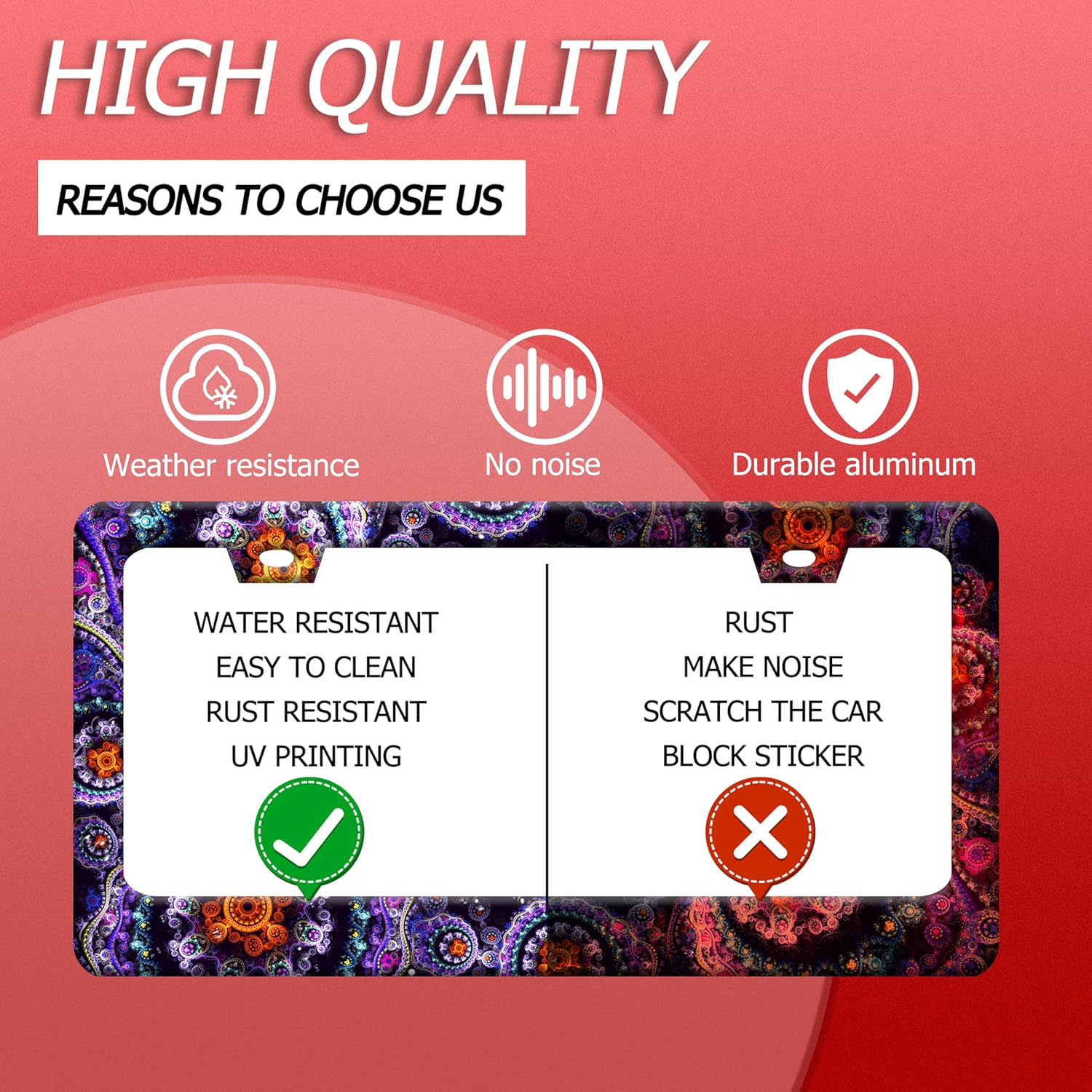 Fantasy Art Flowers License Plate Frame Colorful Mandala Floral License Plate Holder Funny Stainless Steel Accessories Cars Decor with 2 Holes and Screws Fits Standard Us Ca Vehicles 12.2 X 6 Inch