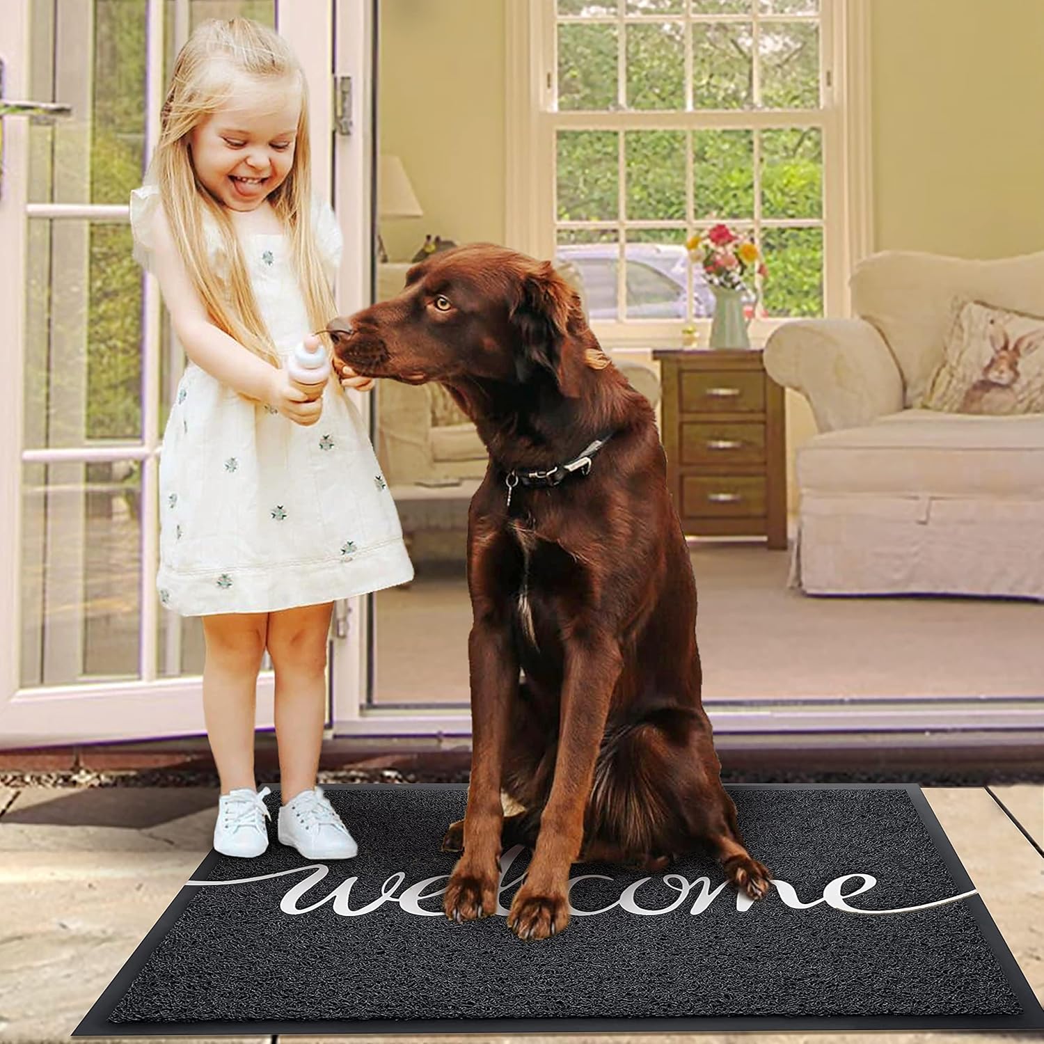 - MULTIFUNCTION USE: The "welcome" doormat is perfect for front doors, entryways, patios, garages, laundry rooms, balconies, kitchens, or any high-traffic area. Size: 36" x 24" inch (3' x 2' feet) for decorating, greeting guests, and as a great gift