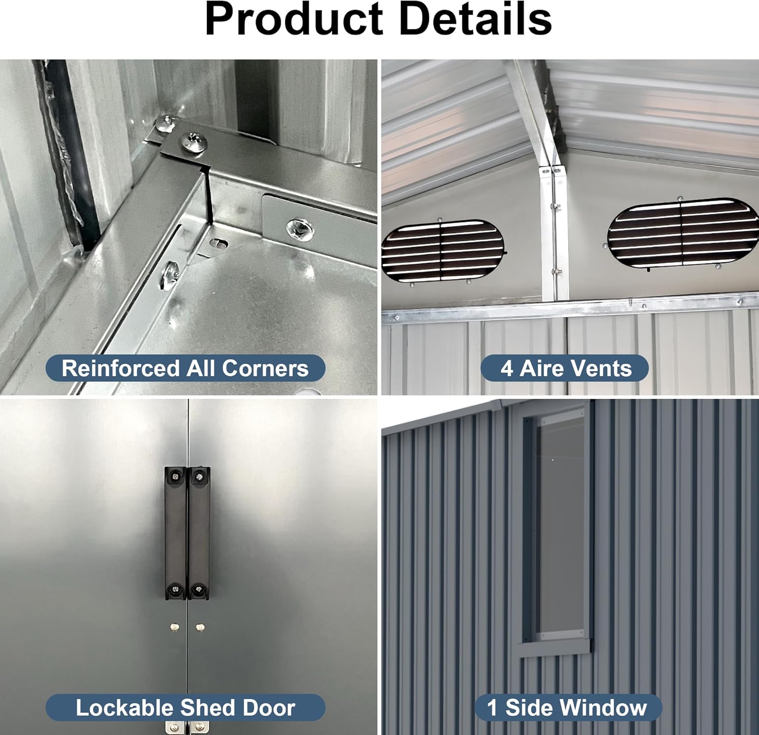 - 【Upgraded Frame Structure】The storage shed features an improved frame structure, making installation easier and enhancing overall stability. It's perfect for keeping your backyard organized as an outdoor tool shed. Plus, the protective film prevents scratches.