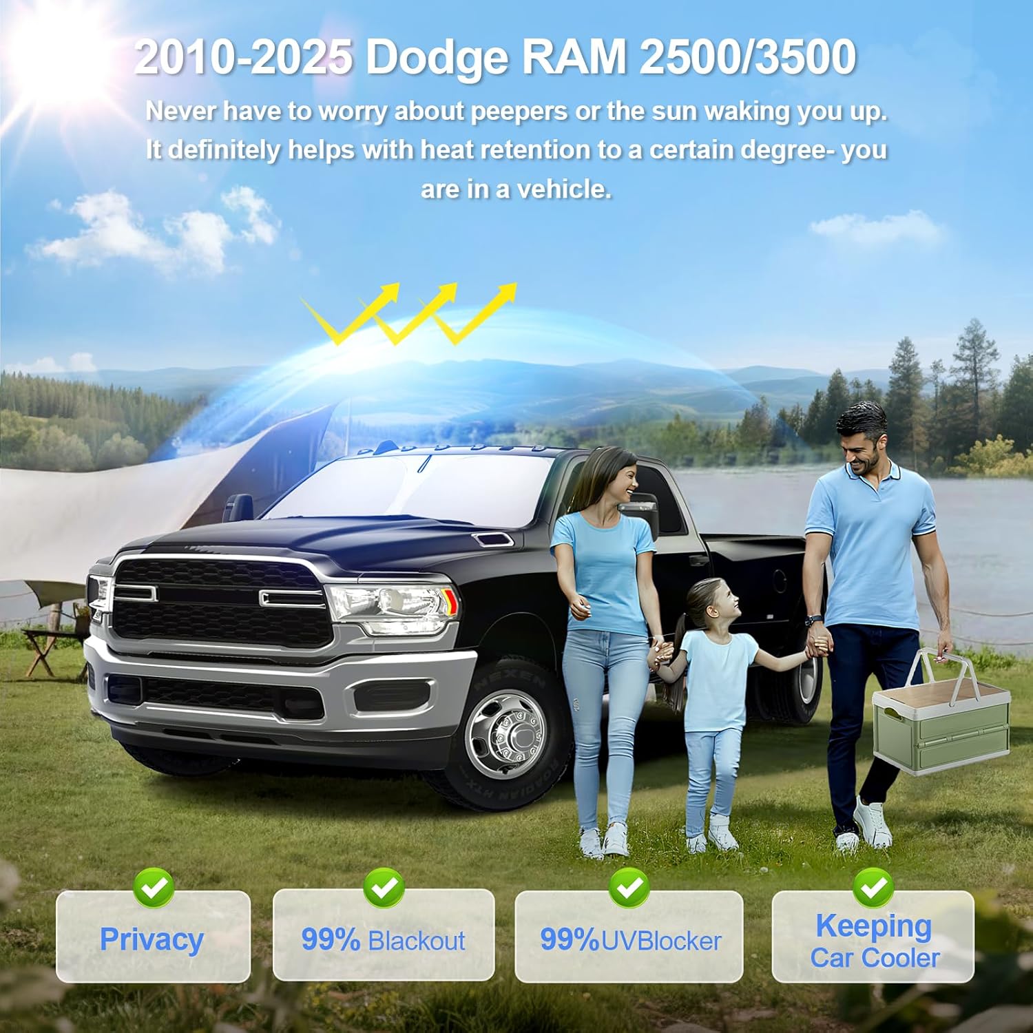 - Designed specifically:SHINELINERS full window sunshade is specially designed for Dodge RAM 2500 3500 2010 2011 2012 2013 2014 2015 2016 2017 2018 2019 2020 2021 2022 2023 2024 2025.Provide your car with comprehensive UV and infrared protection, not only keeping the interior cool in hot weather but also extending the lifespan of the car's interior
