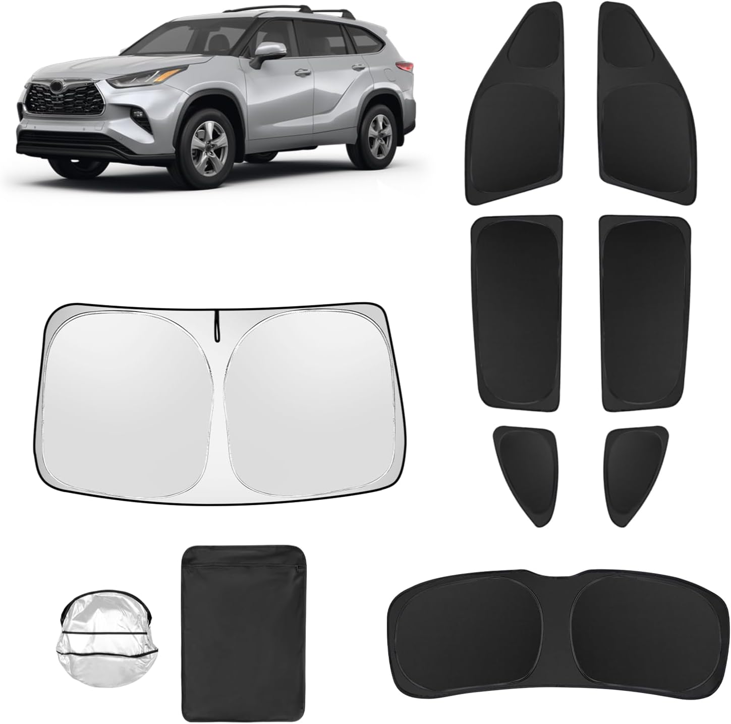 - Designed specifically:SHINELINERS full window sunshade is specially designed for Toyota Highlander 2020 2021 2022 2023 2024 2025.Provide your car with comprehensive UV and infrared protection, not only keeping the interior cool in hot weather but also extending the lifespan of the car's interior