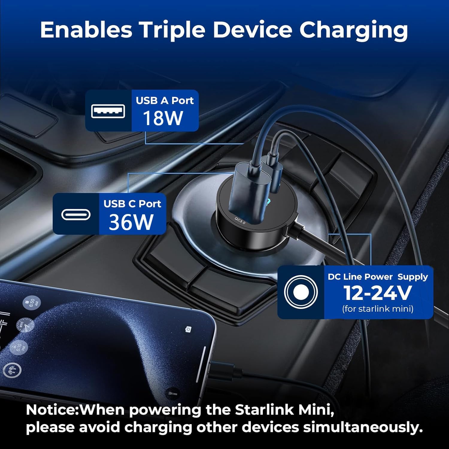 - Included Components : 3 in 1 Starlink Car Charger