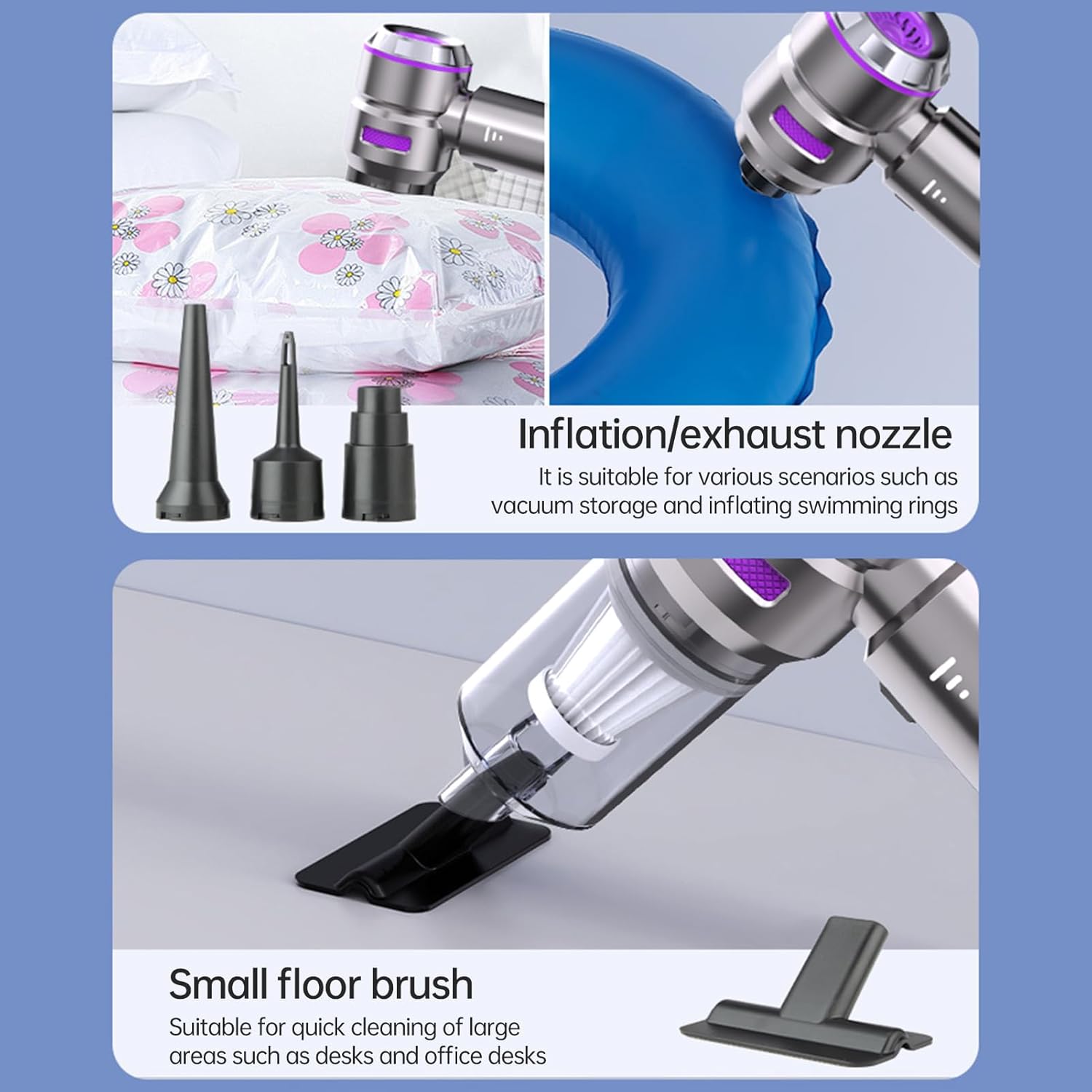 - 【Compact and Easy to Carry】This air blower&handheld mini vacuum cleaner is small and weighs only 1 lb, an ordinary drawer or car storage box can accommodate it, and we are equipped with a storage bag that can hold all the accessories, so it is convenient for you to carry it on the go.