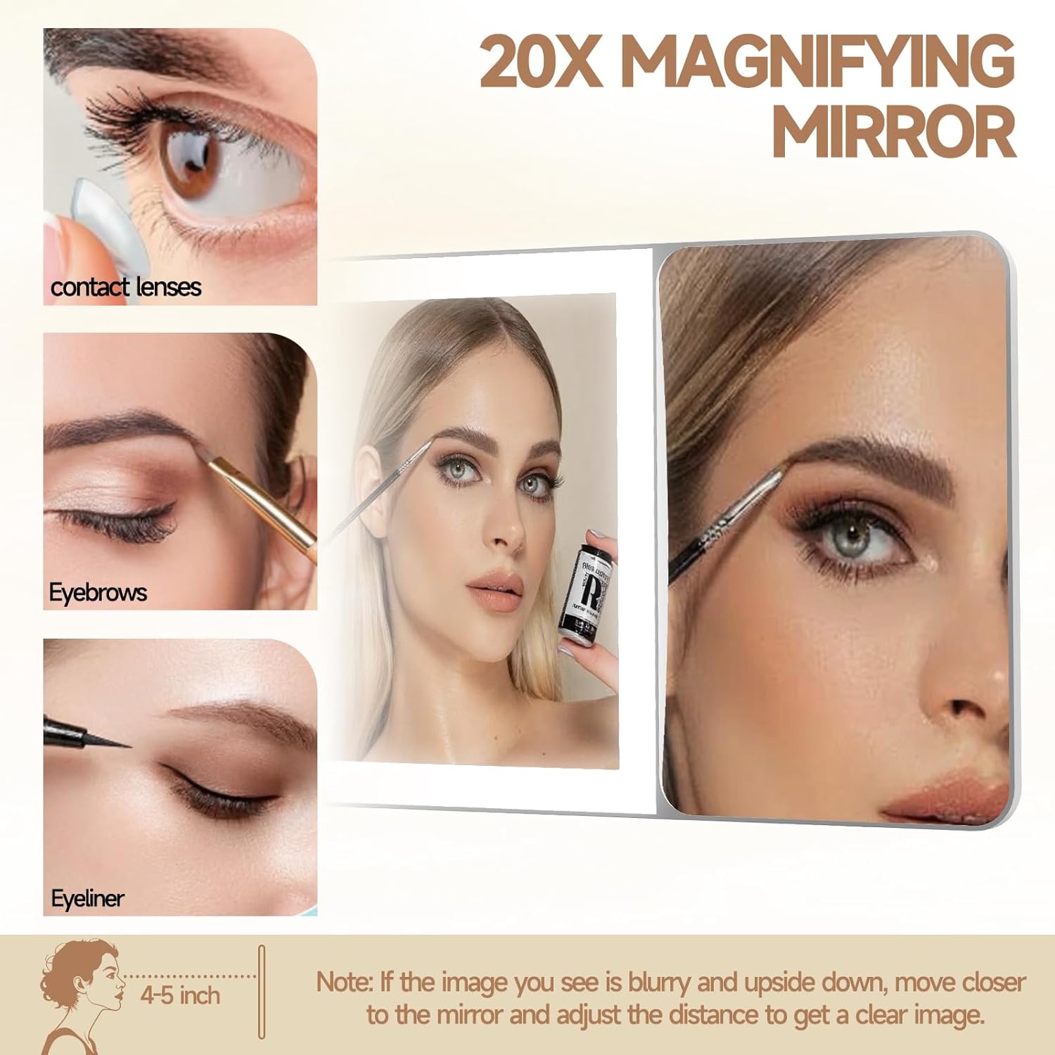 - 【Makeup Mirror With 20X magnification】 Our visor makeup mirror has a large mirror surface and a wide field of view, allowing you to view the overall effect of your makeup after applying it; not only that, we also equipped it with 20X magnifying mirror, whether you are touching up your makeup, retouching your eyebrows or retouching your eyeliner. The ultra-clear reflection ensures that every detail is clear and realistic, making it an indispensable tool for makeup enthusiasts and professionals.