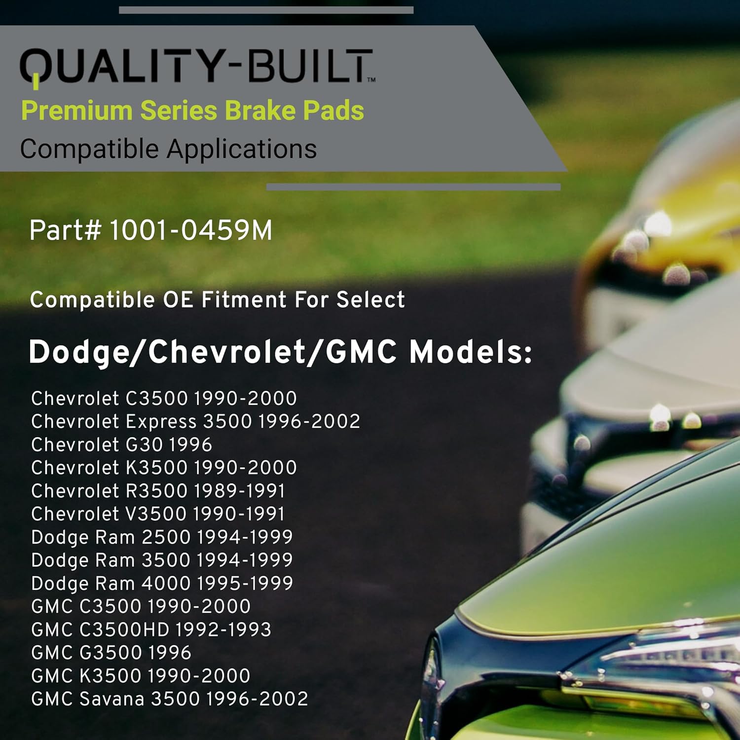 Premium Semi-Metallic Front Brake Pads (1001-0459M) Compatible with 1989-2002 Chevrolet/Dodge/GMC (C3500/C3500HD/Express 3500/G30/G3500/K3500/R3500/Ram 2500/Ram 3500 & More)