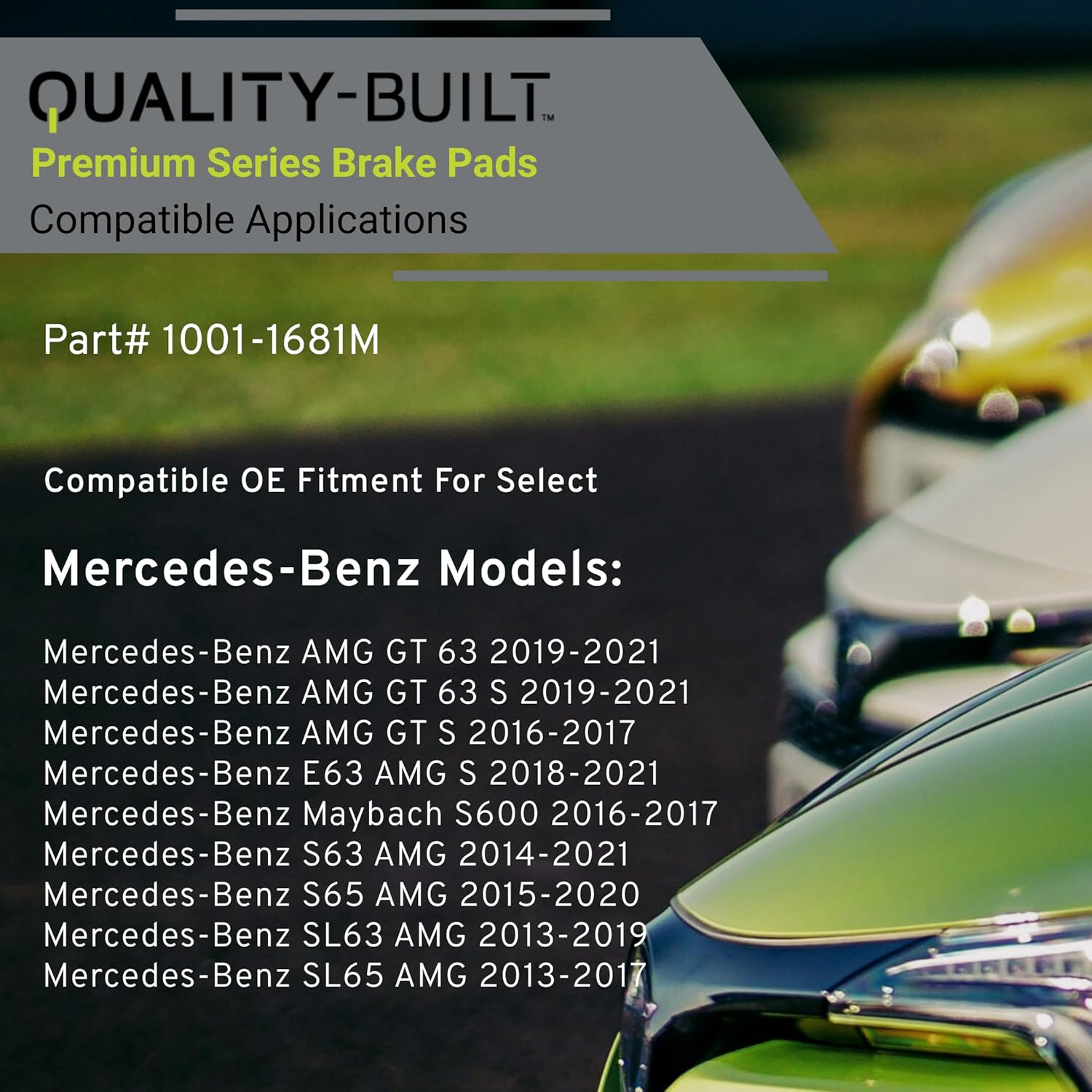 Premium Semi-Metallic Rear Brake Pads (1001-1681M) Compatible with 2013-2021 Mercedes-Benz (AMG GT 63/AMG GT 63 S/AMG GT S/E63 AMG S/Maybach S600/S63 AMG/S65 AMG/SL63 AMG/SL65 AMG)