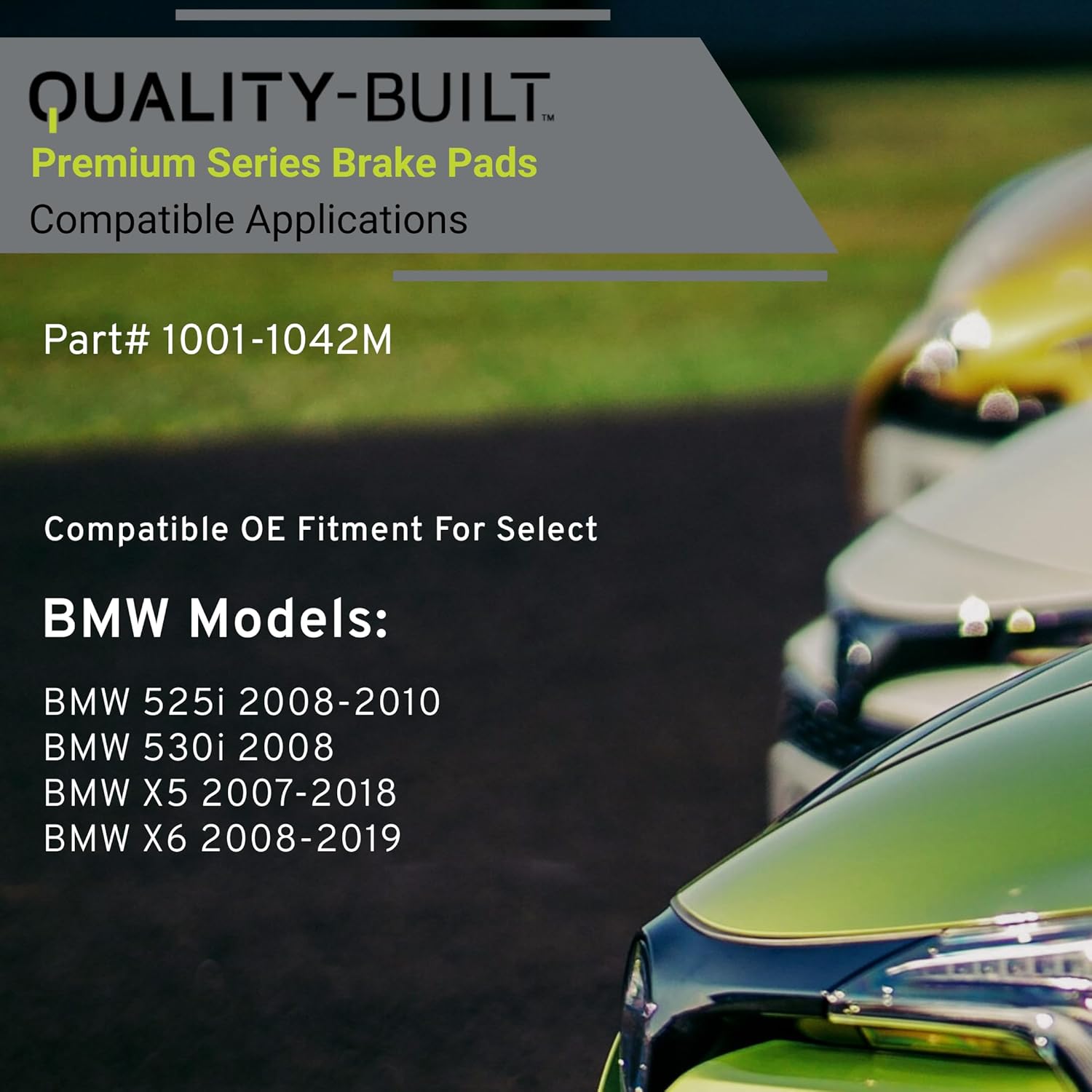 - VEHICLE FITMENT LIST: BMW 525i 2010-2008, 530i 2008, X5 2018-2007, X6 2019-2008 (PART#1001-1042M)
