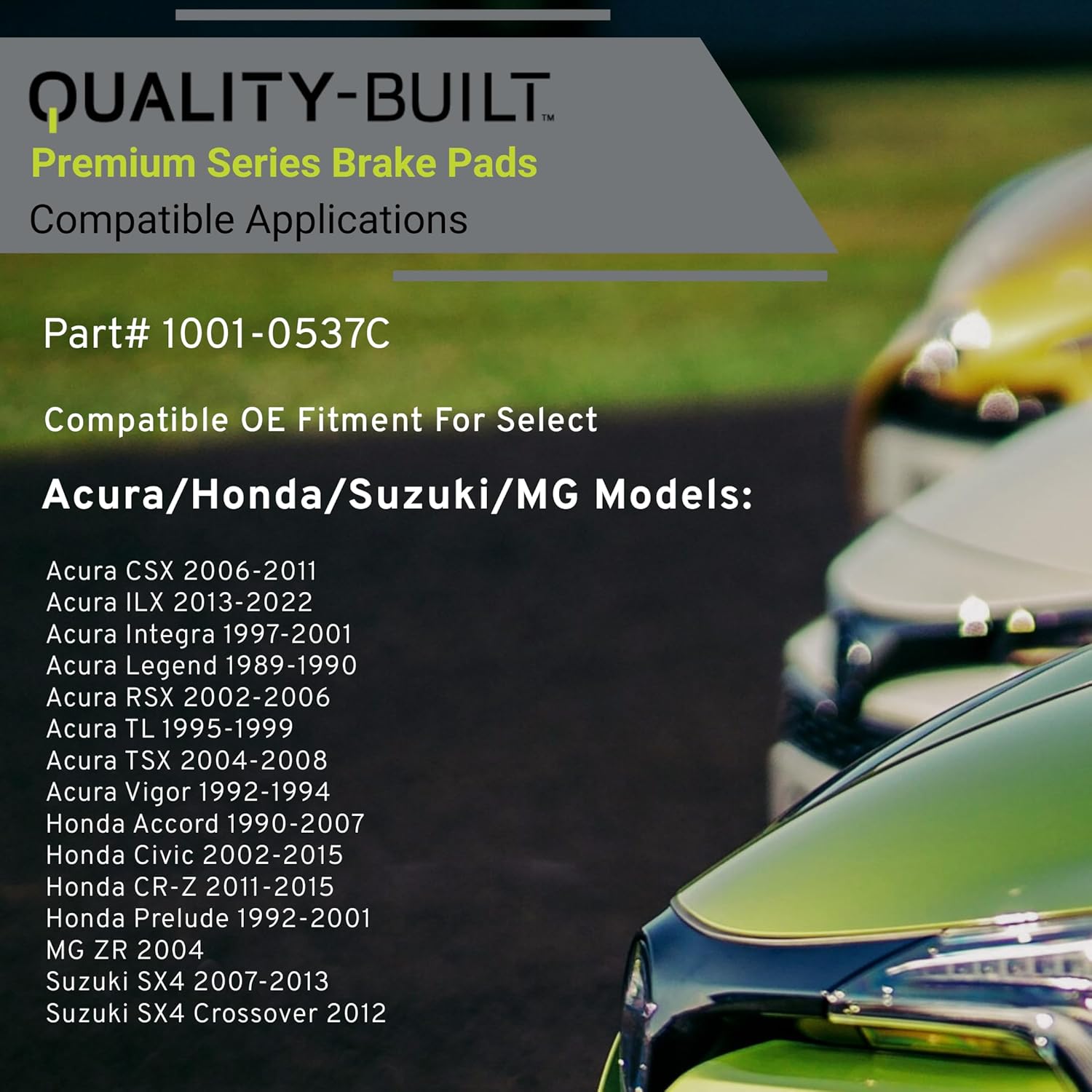 Premium Ceramic Rear Brake Pads (1001-0537C) Compatible with 1989-2022 Acura/Honda/MG/Suzuki (Accord/Civic/CR-Z/CSX/ILX/Integra/Legend/Prelude/RSX/SX4/SX4 Crossover/TL/TSX/Vigor/ZR)