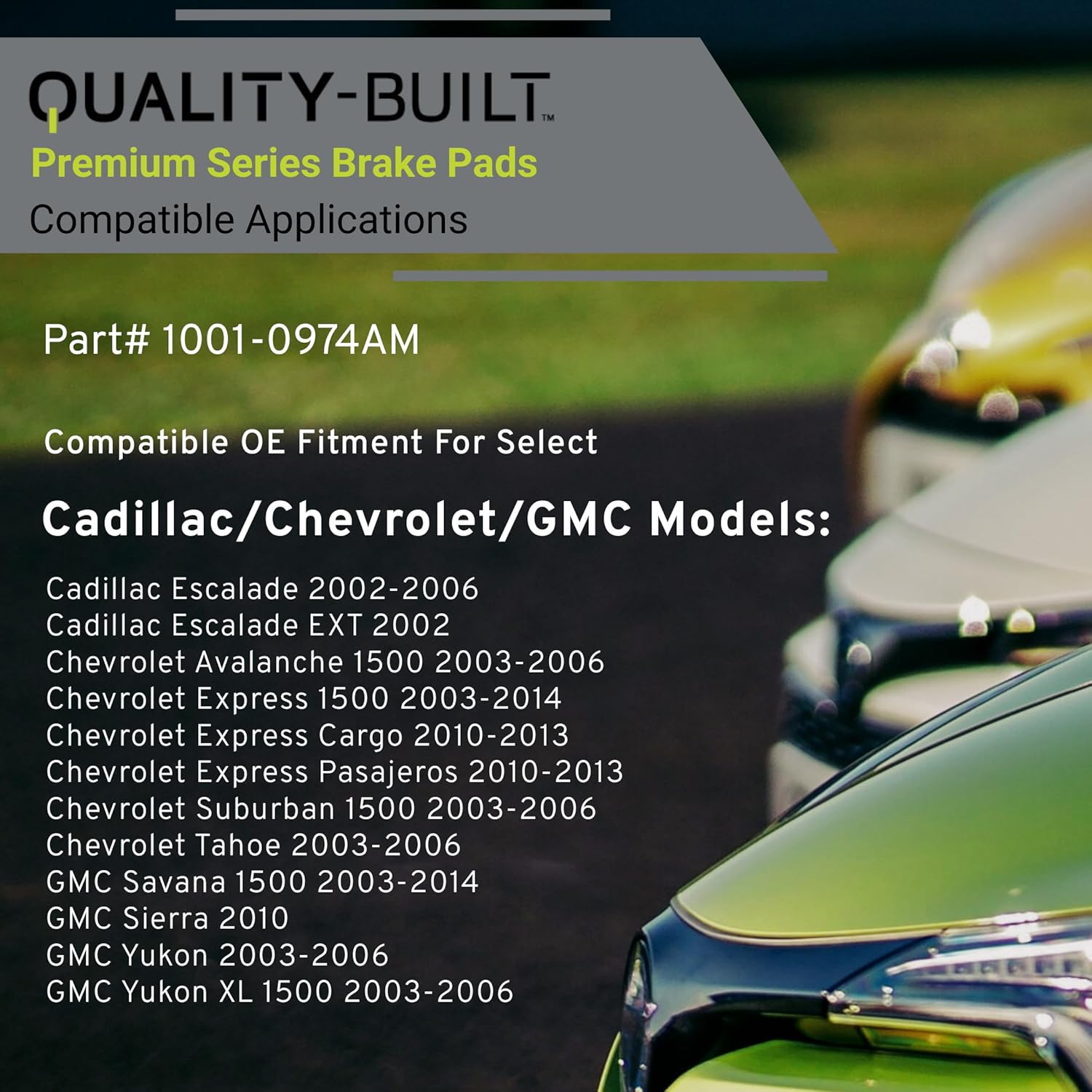 Premium Semi-Metallic Rear Brake Pads (1001-0974AM) Compatible with 2002-2014 Cadillac/Chevrolet/GMC (Avalanche 1500/Escalade/Express 1500/Savana/Sierra/Suburban/Tahoe/Yukon & More)