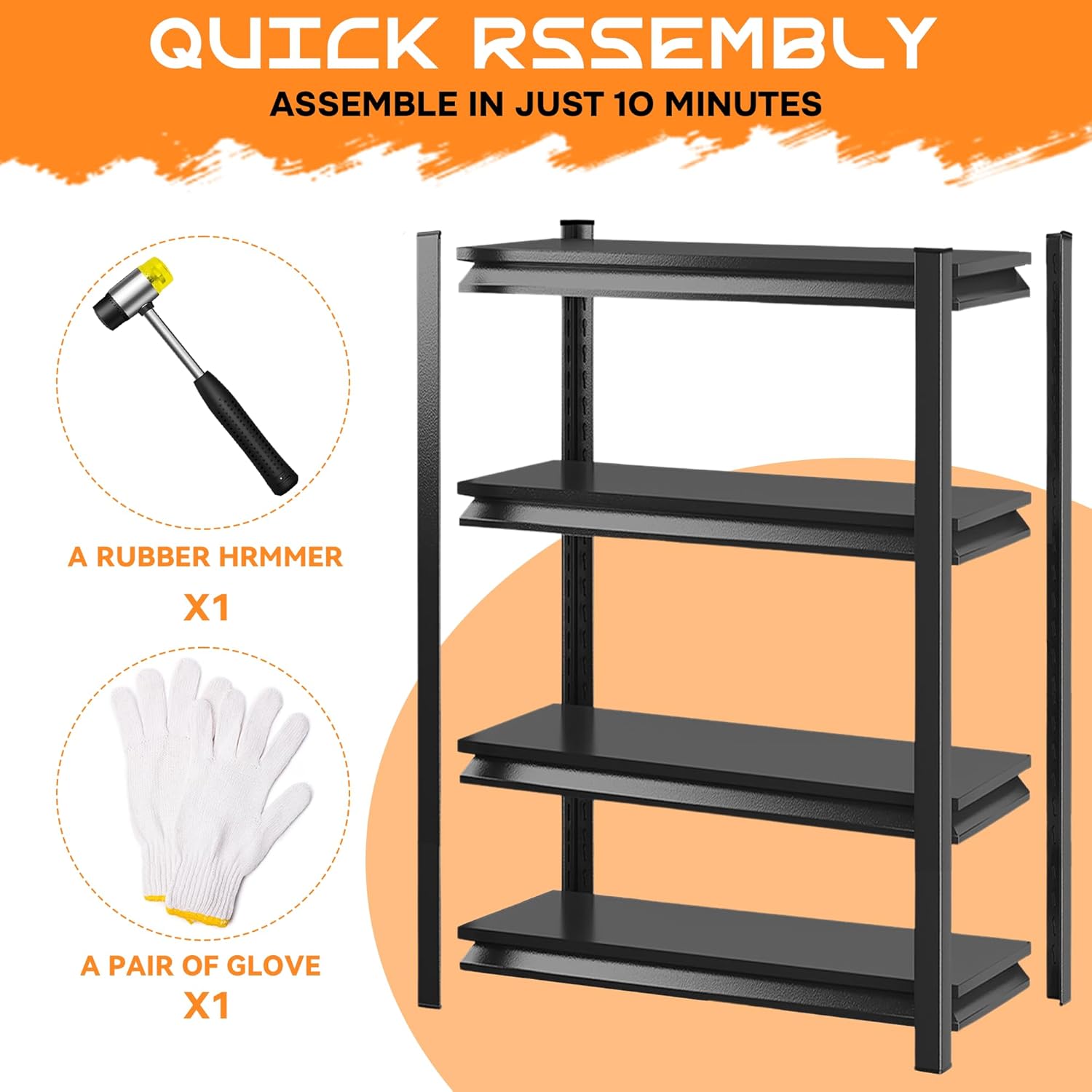 - 【CONVENIENT ASSEMBLY EXPERIENCE】The assembly process of this storage rack is extremely intuitive and easy. No additional tools are required, and we have prepared a detailed instruction manual with all the necessary hardware for you. With no bolts, screws or nuts, you can assemble this heavy-duty storage shelf in just 10 minutes.