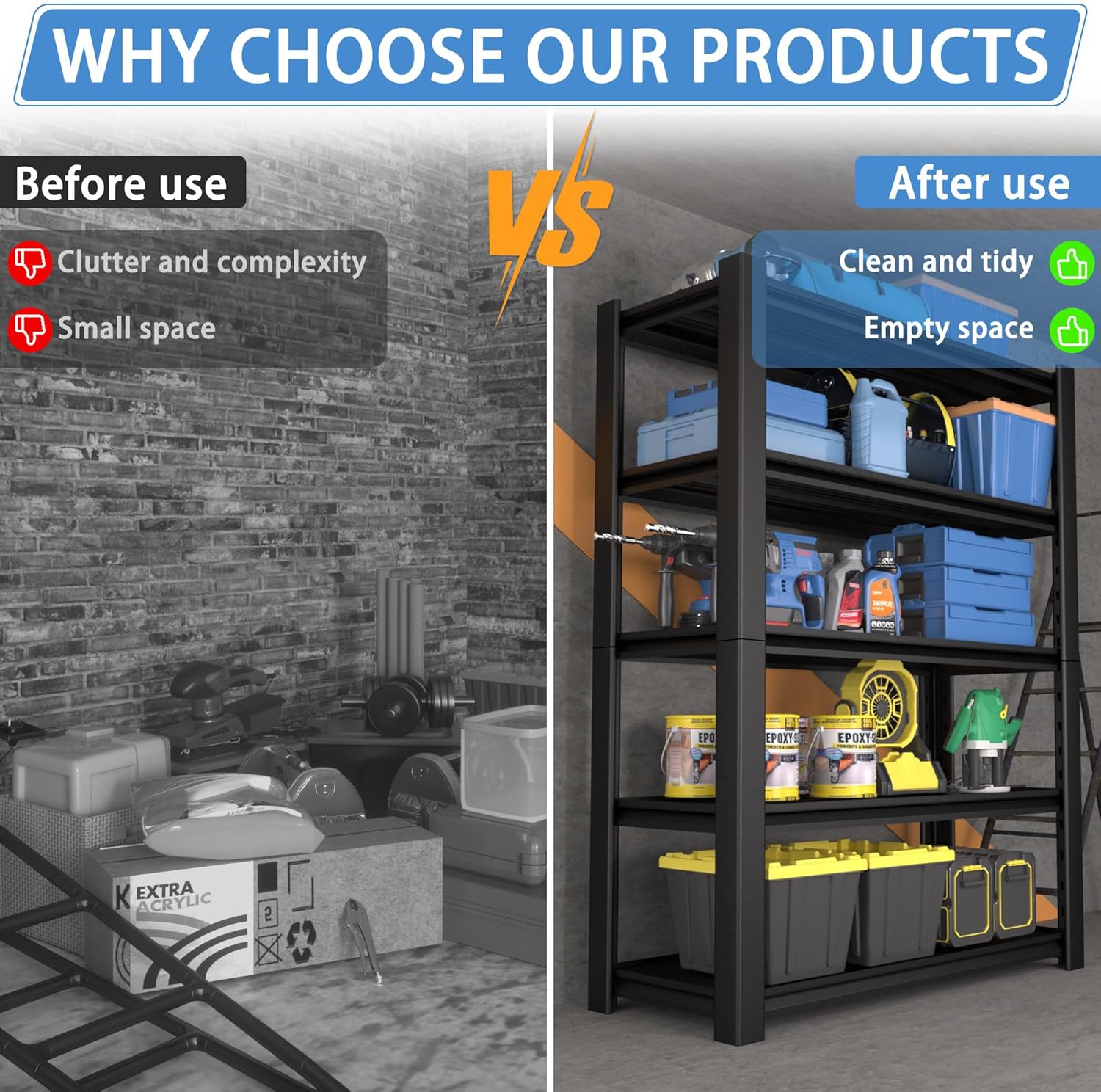 - Versatile for Any Space & User: This metal shelving unit declutters and organizes any area where you need storage. It's ideal for the garage, workshop, basement, pantry, utility room, or warehouse – holding tools, supplies, and household items with ease. Perfect for DIYers, mechanics, homeowners, renters, and handymen seeking a dependable storage solution.