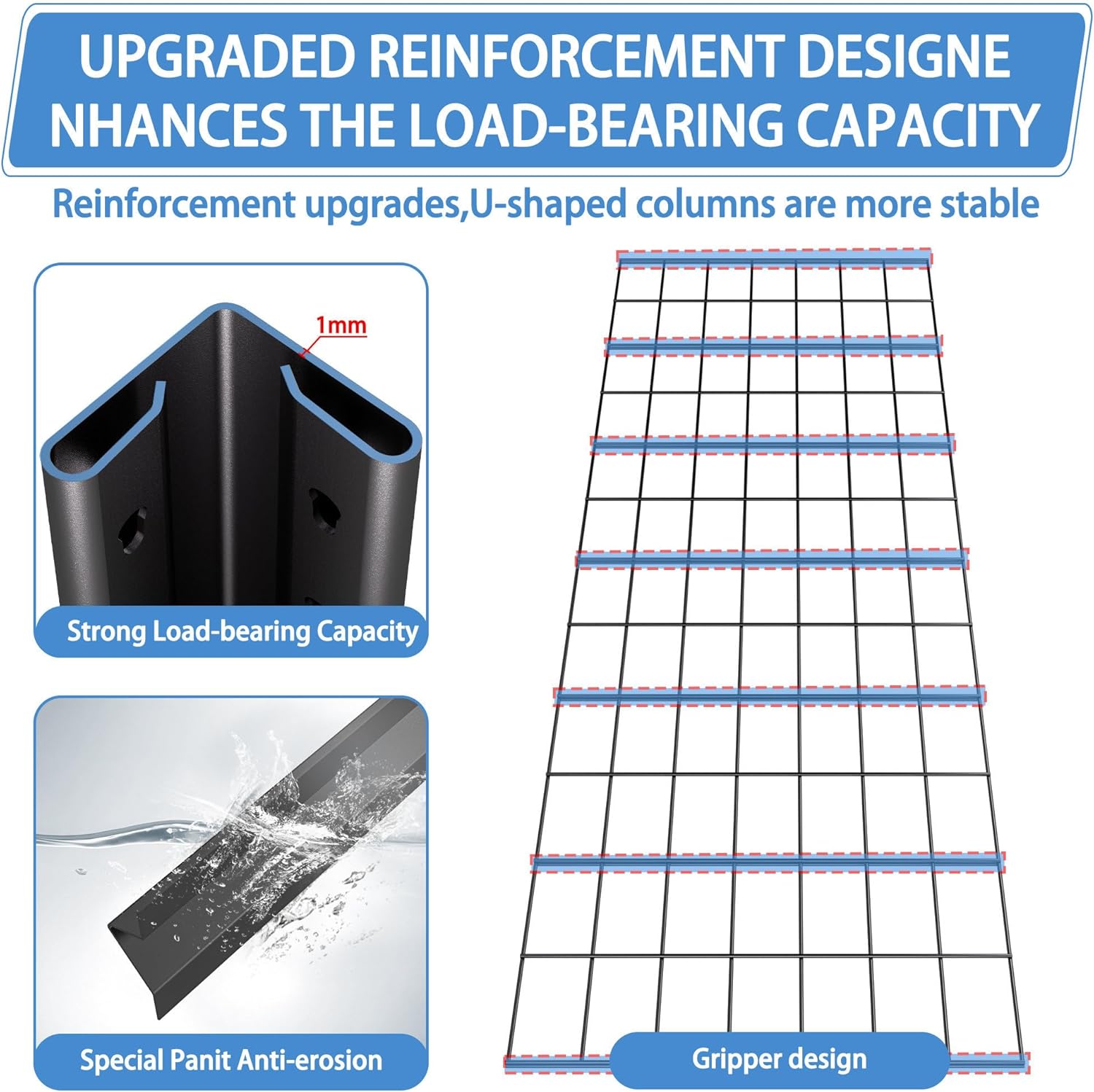 - Wire Mesh Shelves – Breathable & Moisture Resistant: Each shelf features a durable steel wire grid design that allows air to flow freely, helping prevent moisture buildup, dust collection, and odor. Perfect for storing tools, gear, or pantry items in garages, basements, or utility rooms.