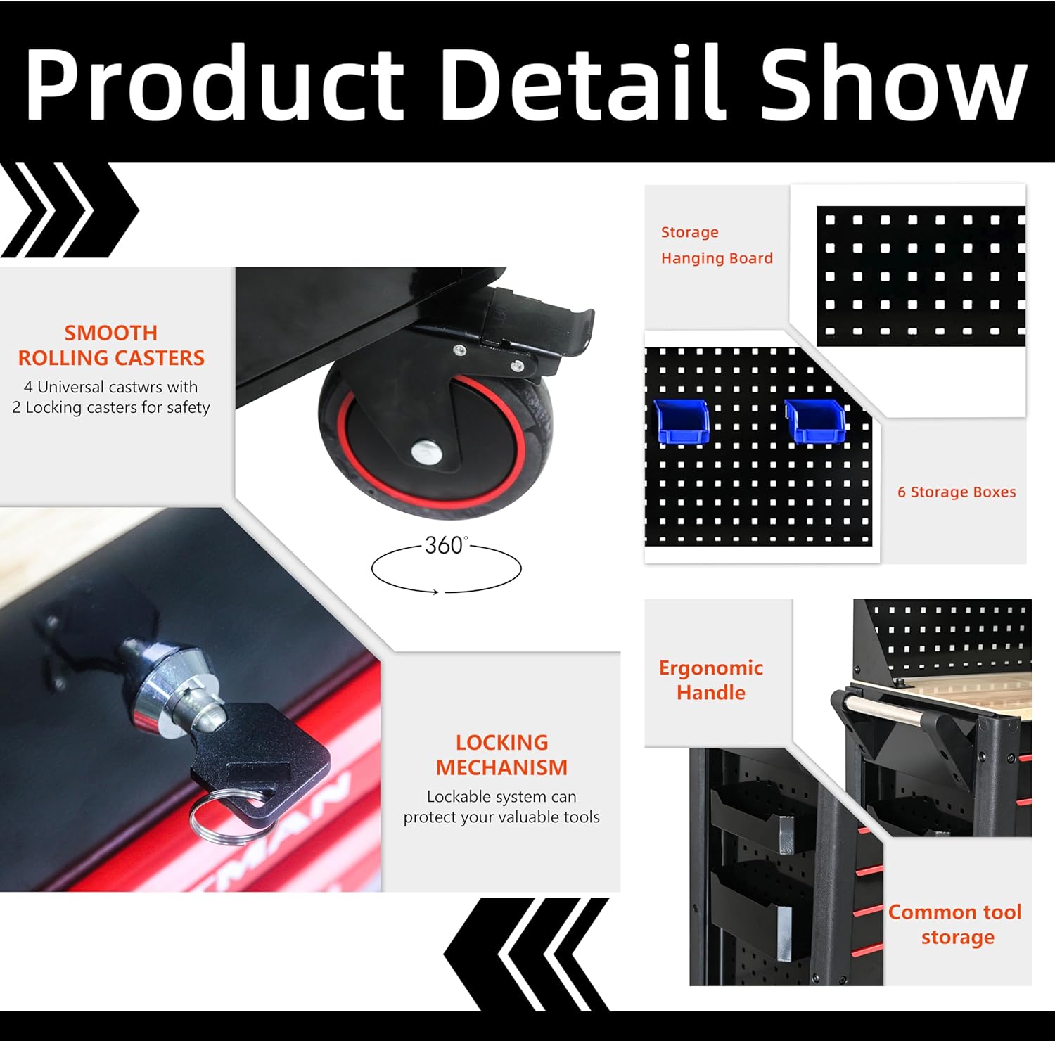 - 【Optimized Garage Mobility】 Effortlessly reposition this garage tool box via 6 industrial casters (4 locking). Glide seamlessly from driveway repairs to basement storage without straining your back. Non-marking wheels protect epoxy floors. Redefine workshop flexibility in any cramped space