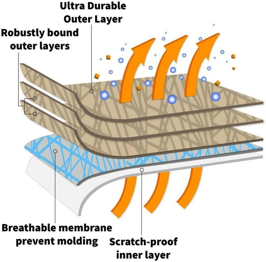 - 5-LAYER BONDED CONSTRUCTION Featuring a robust five-layer structure, the mid-layer includes double-cushioned padding for added protection. The outer layer is one-way breathable, waterproof, and features a scratch-resistant inner lining made from soft, non-fleece fibers to preserve your vehicle's finish.
