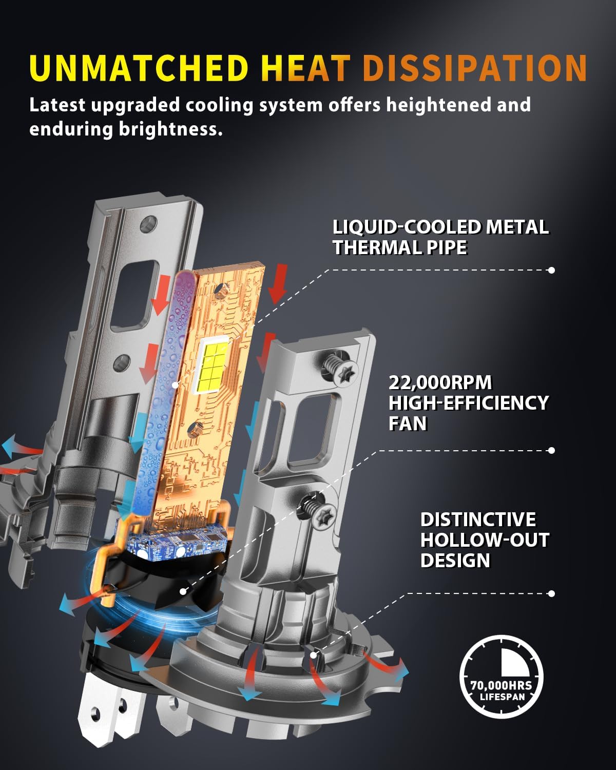 - 【UNMATCHED POWERFUL PERFORMANCE】Well-built premium aviation aluminum body, thermostatic copper plate, and 20,000RPM superpower cooling fan form an efficient cooling system to quickly cool the lights and ensure stable and continuous operation, extending the average life of each light to 70,000Hrs.