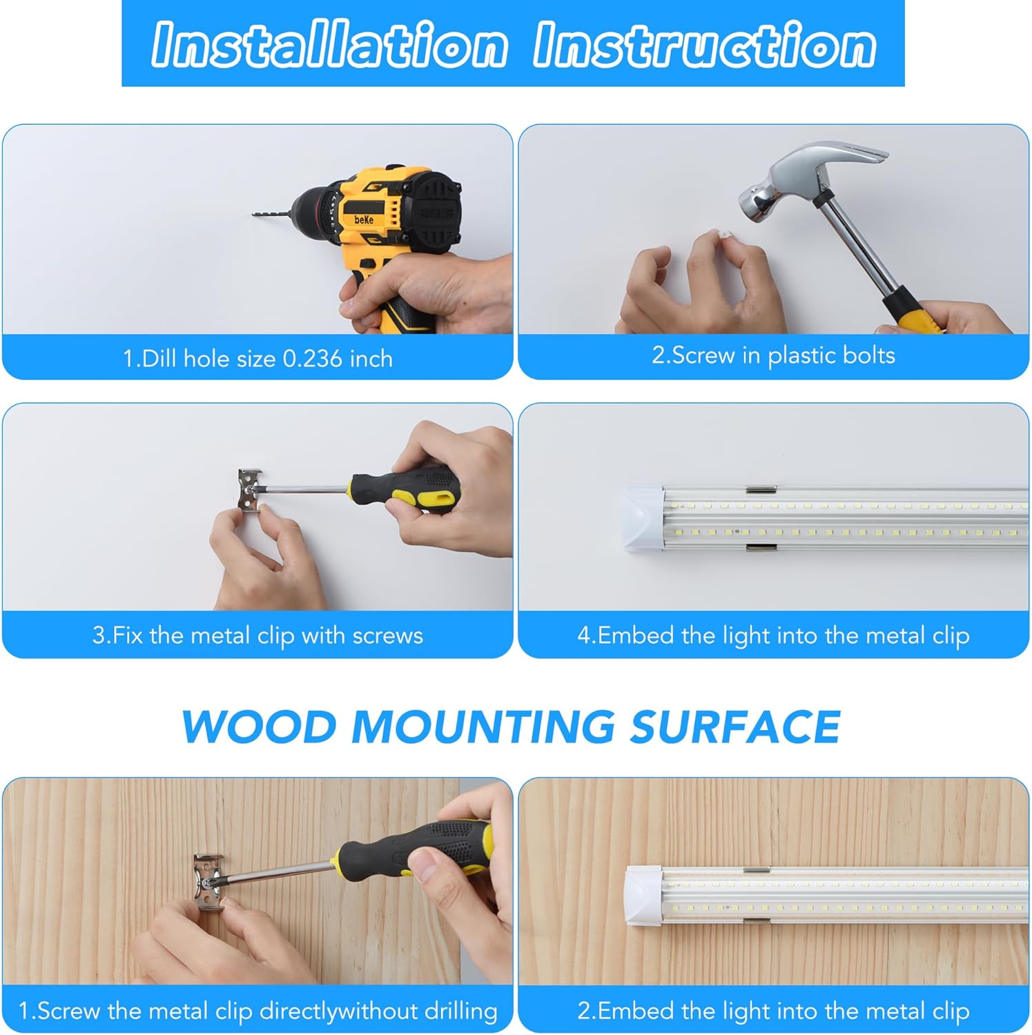 - [Ultra-Bright 270° V-Shape LED Shop Lights]Get commercial-grade brightness! Our 4FT LED lights feature 160LM/W & a 270° V-shape design for uniform, flicker-free daylight (6000-6500K). Perfect garage led lights or workshop led light fixture, illuminating every corner. Outshines fluorescents, slashes energy costs.