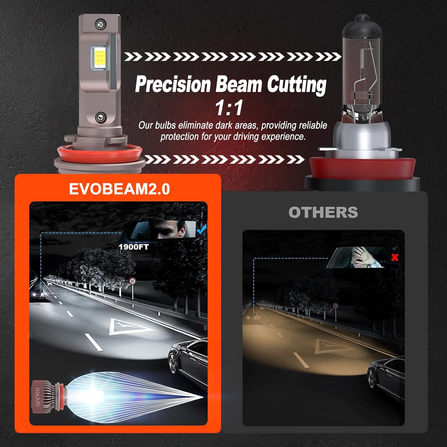 - 【Pure White & Extended Reach】: HIKARI Darkenex 9005 bulbs, featuring the advanced Evobeam2.0 chip, deliver 40,000 lumens of crisp 6000K light, illuminating up to 1900 feet ahead, making them suitable for use in rainy and foggy weather.