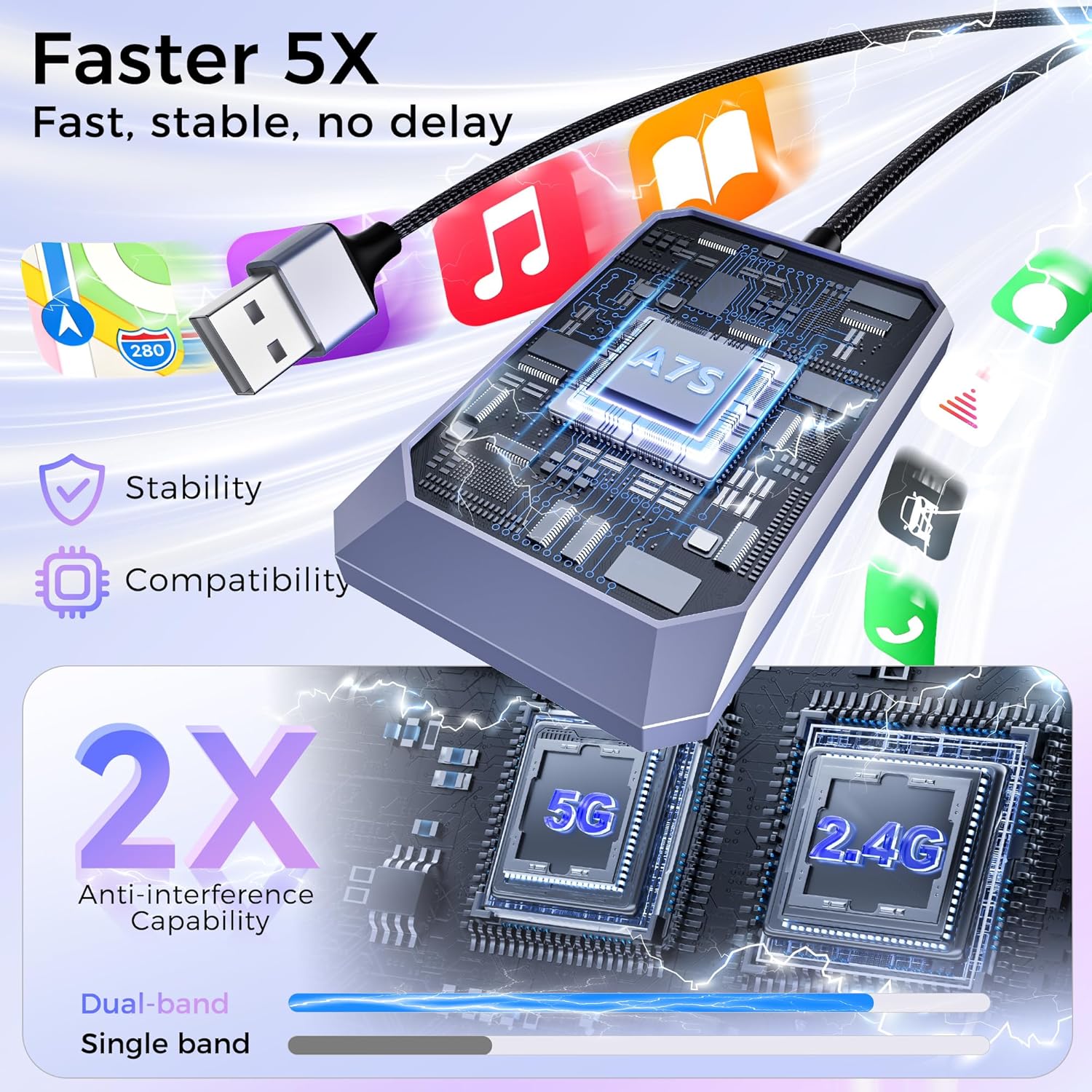 - Wireless CarPlay Upgrade: Instantly convert your vehicle’s OEM wired CarPlay to wireless. Enjoy full CarPlay features like navigation, music, voice assistant, calls, and messages. Keeps original control logic while reducing cable clutter for a cleaner interior