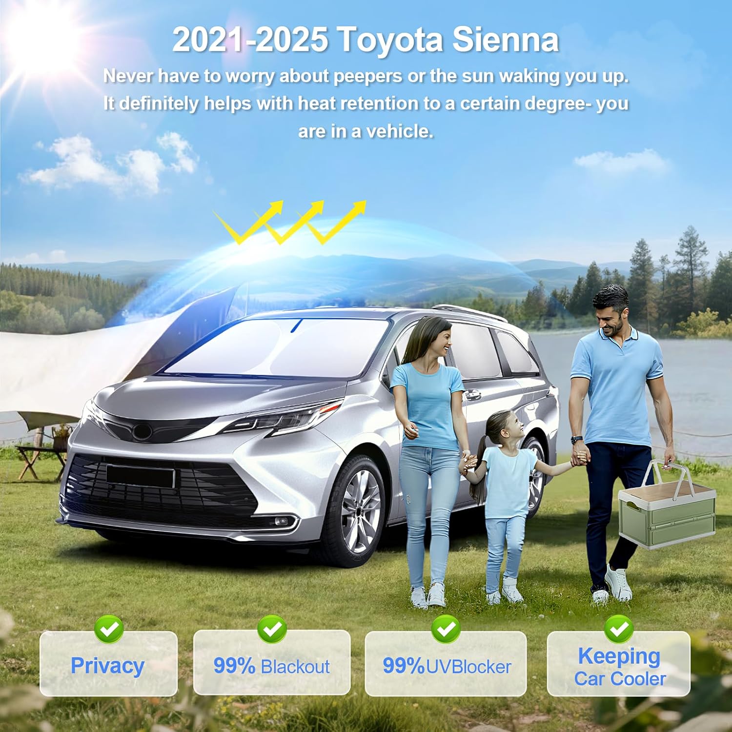 - Designed specifically:SHINELINERS full window sunshade is specially designed for Toyota Sienna 2021 2022 2023 2024 2025.Provide your car with comprehensive UV and infrared protection, not only keeping the interior cool in hot weather but also extending the lifespan of the car's interior