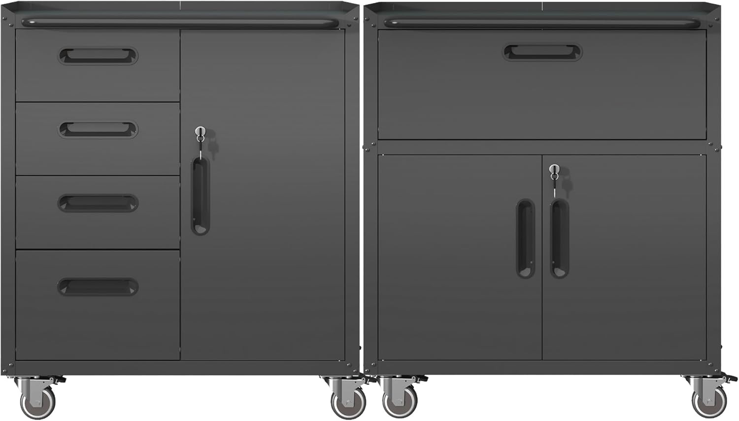 Metal Tool Cabinet,Garage Storage Cabinet System,Wall Cabinet & Locking Rolling Tool Cabinet with Doors and Adjustable Shelves,Steel Tool Cabinets for Home,Office (2 Pcs-StyleF, Black)