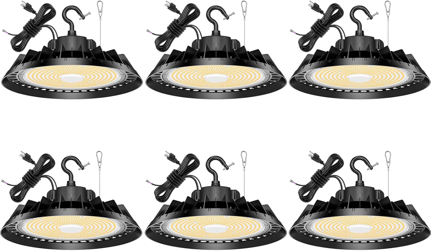 - Super Waterproof & Excellent Heat Dissipation: Upgraded Led High Bay Light is made of aluminum heatsink, and excellent hollowed-out for heat dissipation high-temperature resistant and corrosion resistant, and featuring IP65 certified water resistant and dustproof, suitable for damp places or other harsh environments.Whole light has ETL and DLC Listed