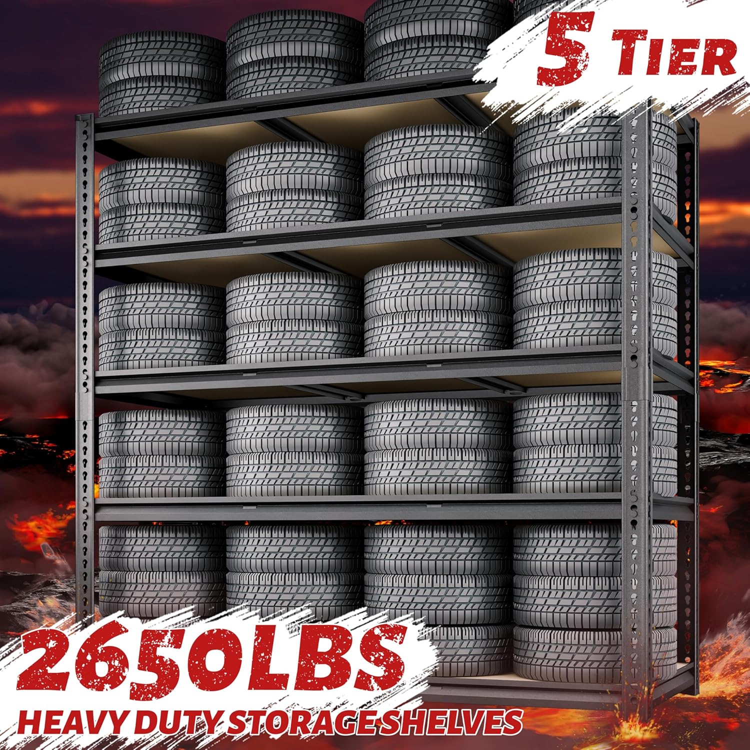 - 【2650LBS Garage Storage Shelves with 10 Reinforcing Support Ribs】Constructed with 5mm high-density fiberboard and a rolled-edge, thickened metal column frame, each shelf features two additional reinforcing support ribs at the base for robust support. Each shelving holds up to 530 lbs, with a total weight capacity of 2650 lbs. Industrial-grade stability and durability make it ideal for commercial use in factories and businesses.